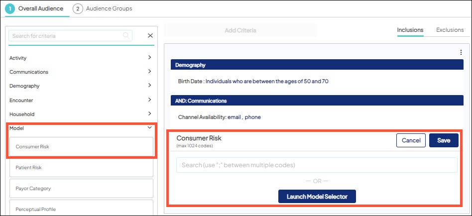 • Save your selected risk models and risk levels to your audience. Learn how.