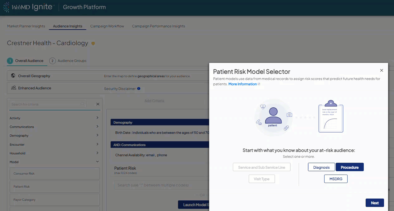 WebMD Ignite lightbulb iconUse 1 model per audience. Which to choose depends on the campaign's objective and available predictive models.