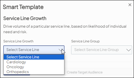 Use the Service Line Growth template to drive volume for a particular service line based on likelihood of individual need and risk.