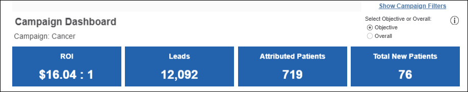 - Attributed Patients: Incremental utilization, or how many patients the campaign has driven to your health system over and above what you would see without the campaign.