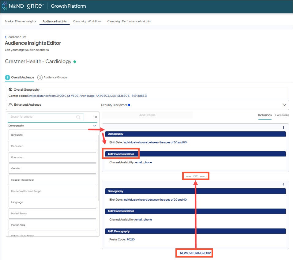 - Check out the Audience Criteria Library to see the available criteria options in each category.
