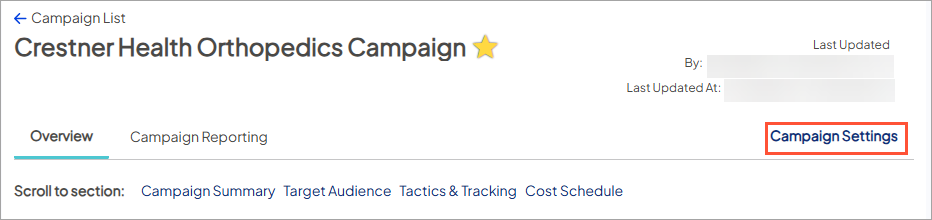 - Check Campaign Settings under campaign workflow to verify that you are pulling in the correct service lines and facilities based on your campaign goals.