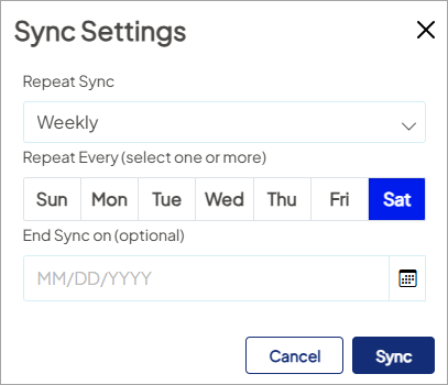 - The sync schedule determines how often contacts are synced to Eloqua to be added to your email campaign.