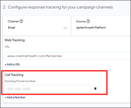 - If you do not use the Tracking Phone Number, you will not be able to track inbound calls associated with your campaign message.