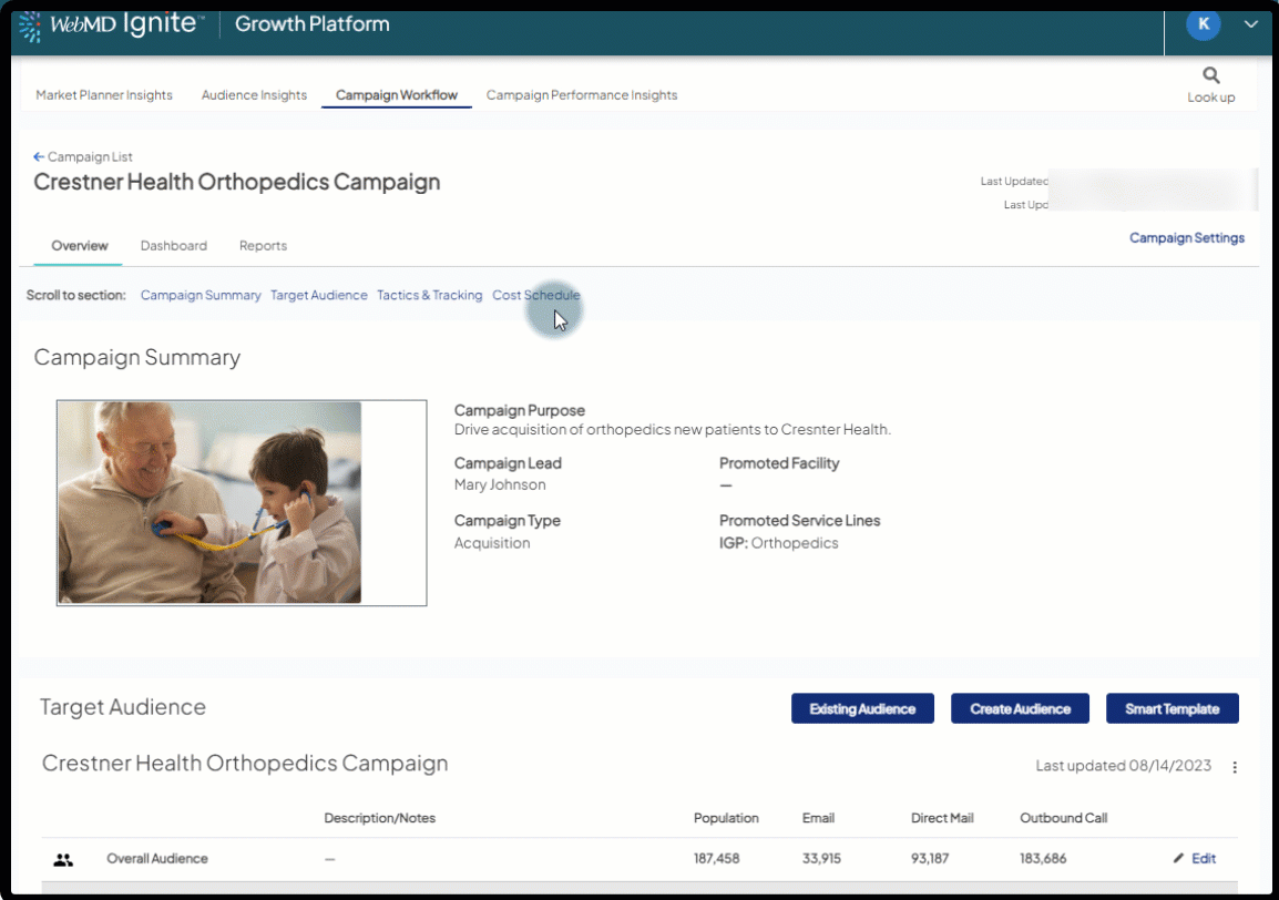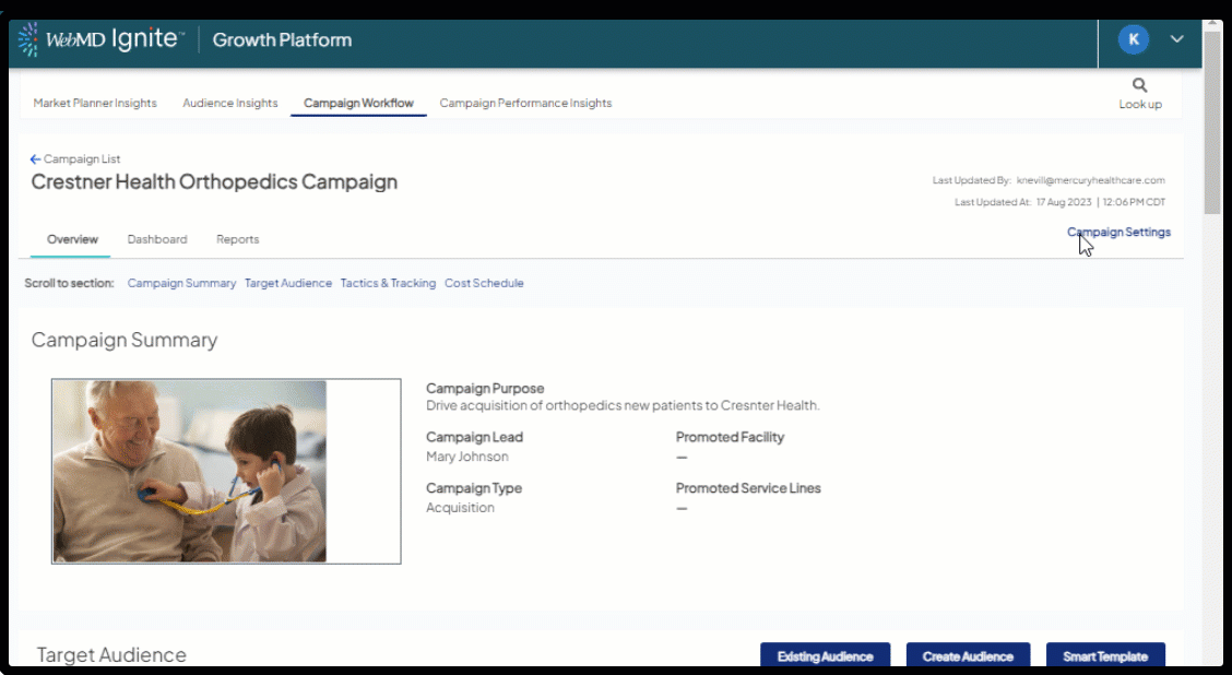 - Make sure you are setting campaign objectives by indicating Promoted Service Lines and Promoted Facilities based on your goal to get the most meaningful data.