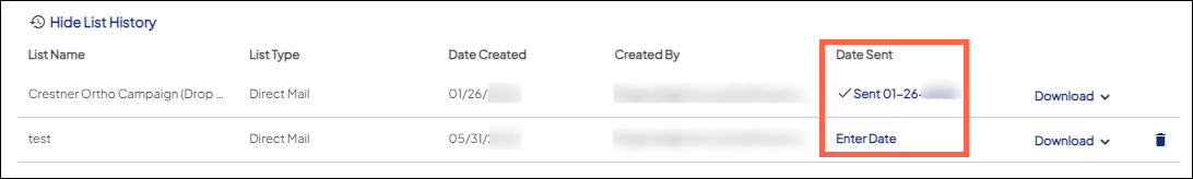- Add your direct mail send date