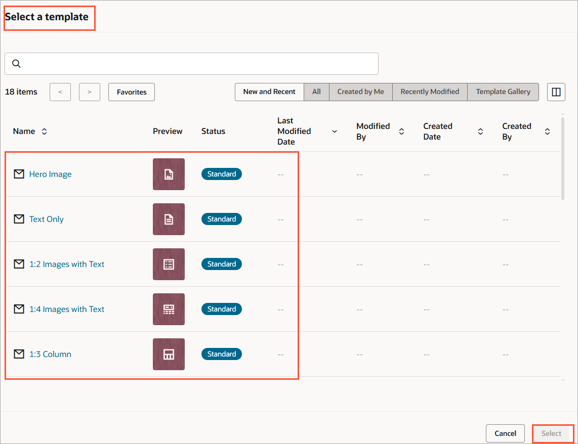 To save some time for the next email build, you can create email templates once your layouts are in place. Go to the Oracle Help Center to learn more.