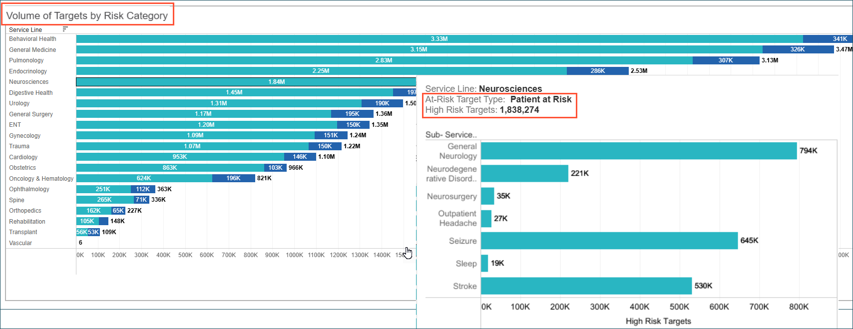 - In the hover text, we added a new label called At-Risk Target Types to clarify which group (patients or non-patients) you’re viewing. Number formatting has also been improved to use whole numbers with commas (e.g., 1,838,274)