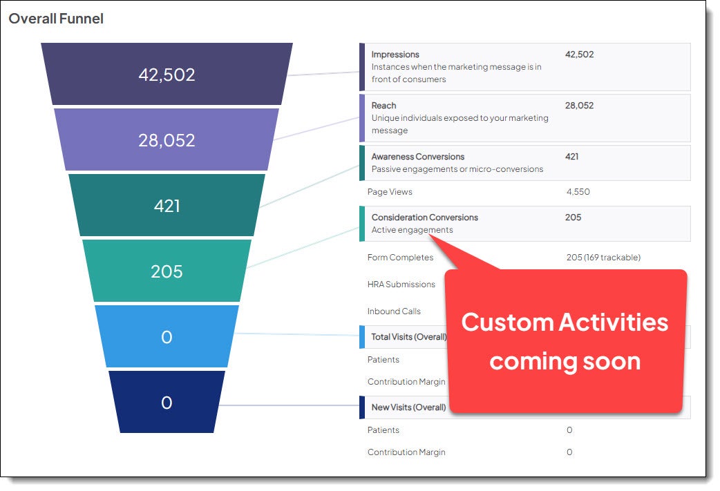 In a coming release, we’ll also be adding custom activities to the Performance > Overall Funnel for a complete view of Consideration Conversions.