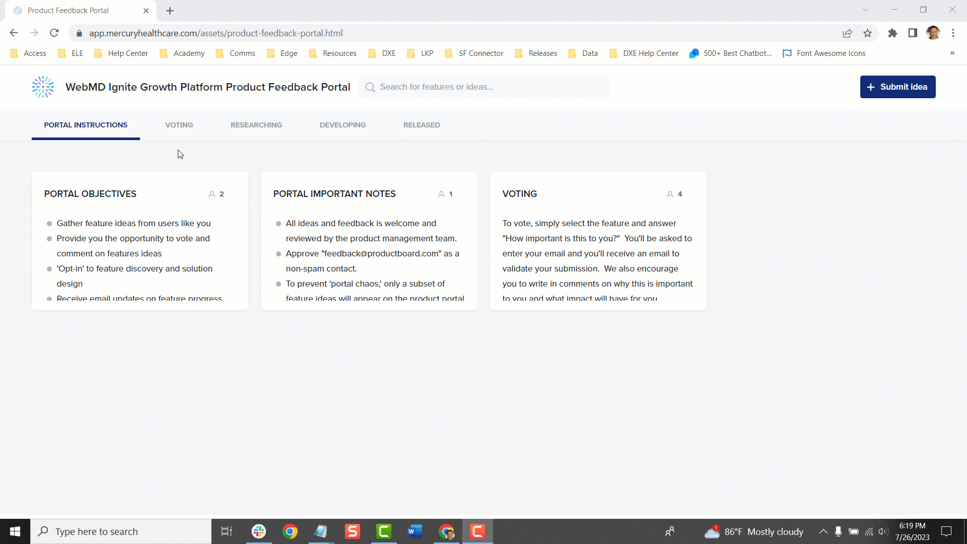 Once you’ve given your feedback, follow along as it moves through our process. Use the tabs at the top of the Portal to stay up to date on ideas of interest:
