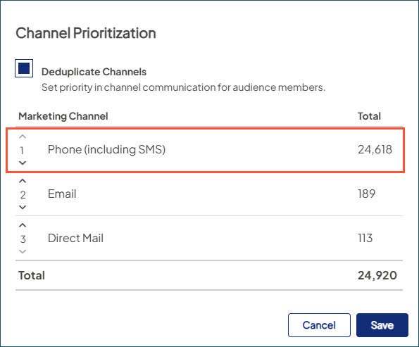 - In Audience Settings, where channels can be deduplicated by priority, you now have an option for Phone (including SMS).