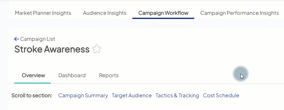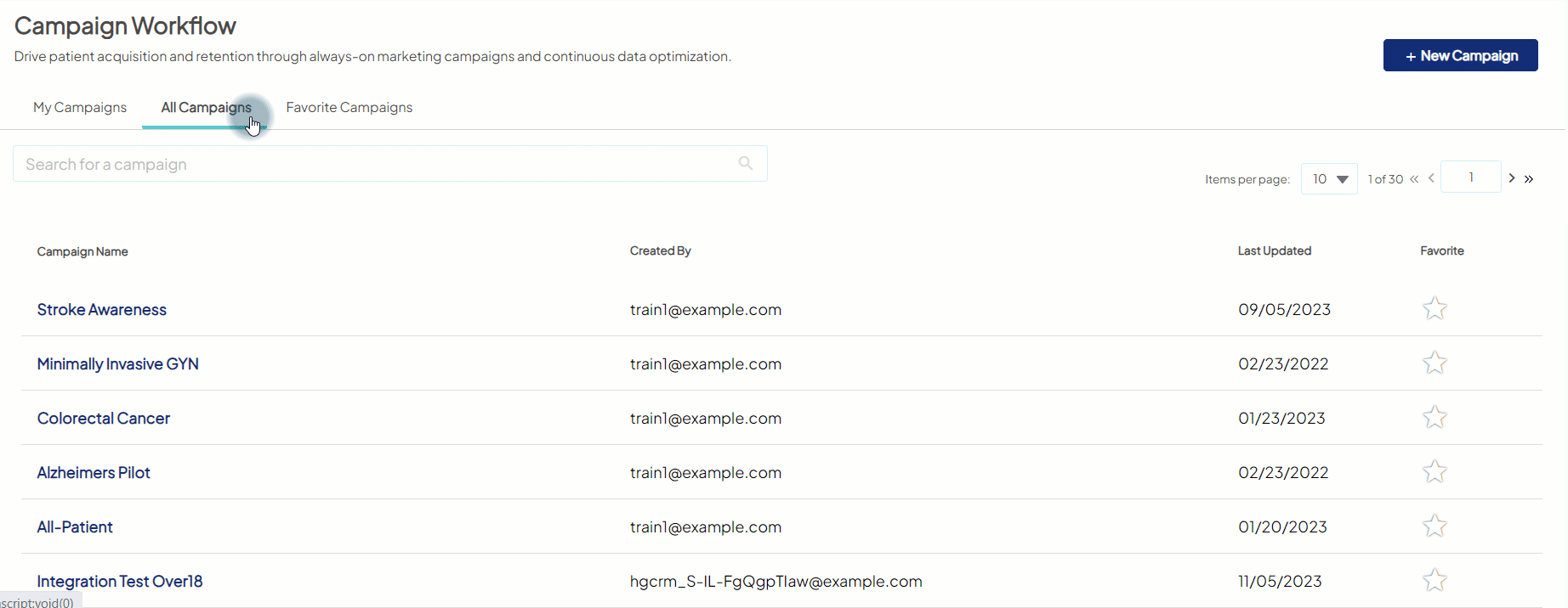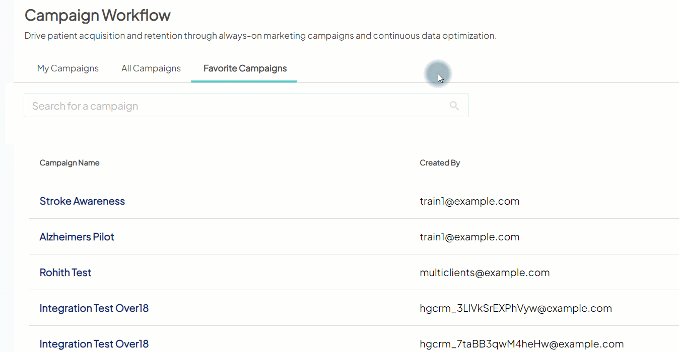 - Favorite Campaigns tab: This new dedicated area shows only your favorites. To access a campaign from the list, click the campaign name as you would from the other tabs.