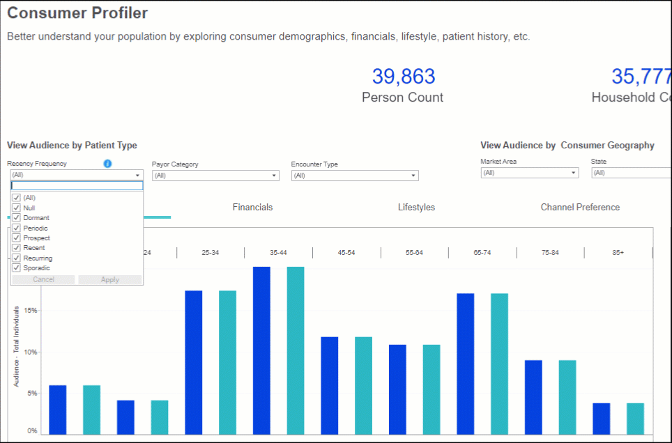 Click the updated filter in the Consumer Profiler to access RF6, which replaces Patient Lifecycle. It’s the same model used as criteria in Audience Insights, giving you a more consistent way to analyze opportunities and build your audience in Ignite Growth Platform.